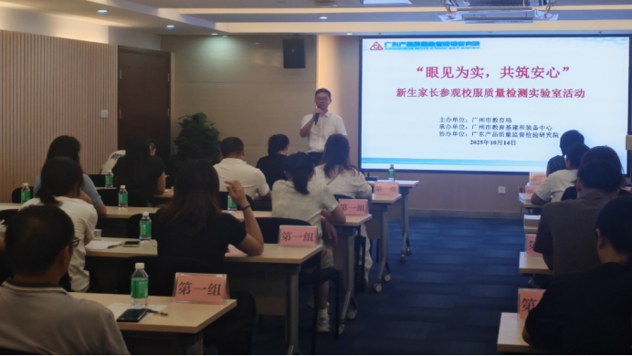 10月14日,“眼见为实,共筑安心”新生家长参观校服质量检测实验室活动在我院科学城总部举行。活动由广州市教育局主办,广州市教育基建和装备中心承办,我院协办。活动旨在提升家长对学生校服质量与安全的认知,推动校服质量管控流程更加透明化。
