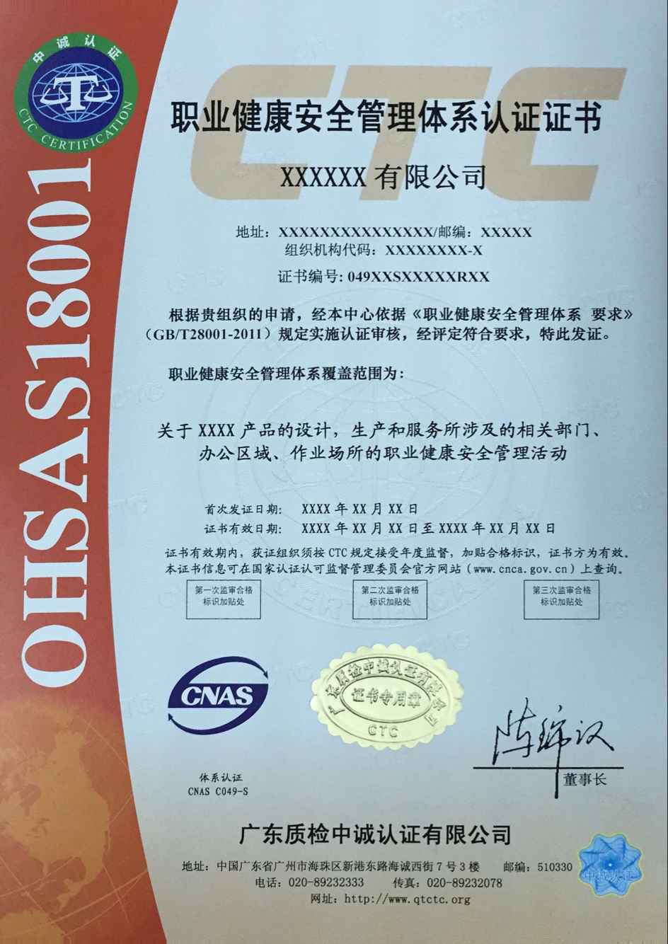 Occupational Health and Safety Management System Certification (OHSMS18001)
